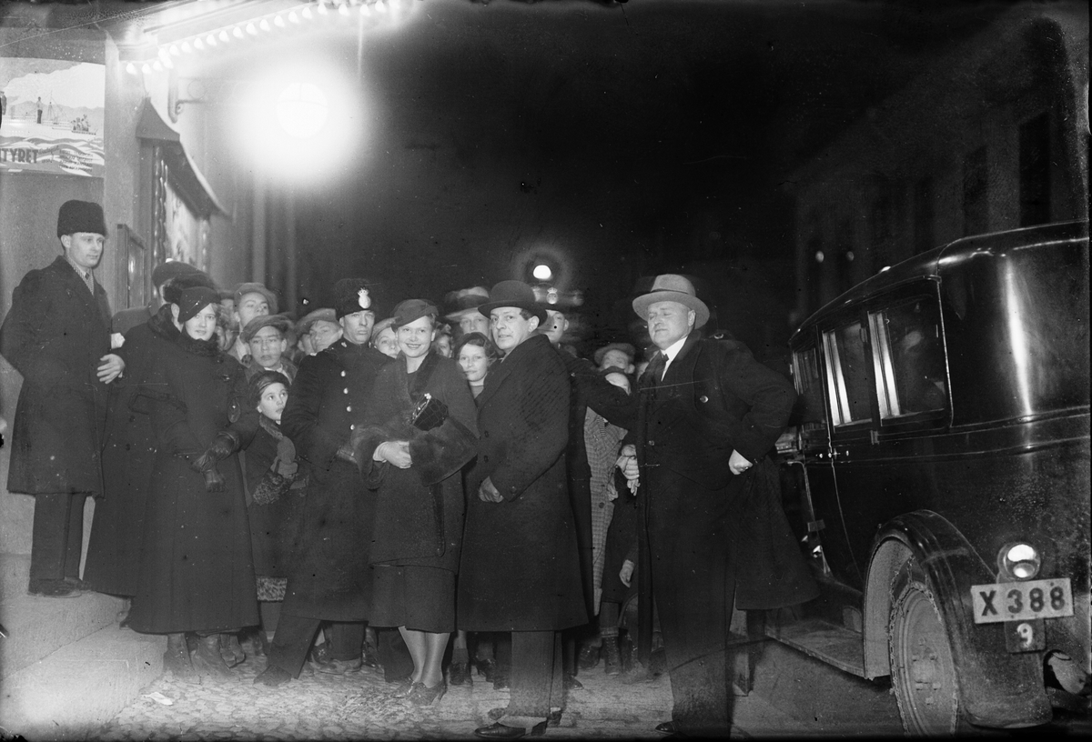 Birgit Tengroth, 1915 - 1983. Skådespelerska sedermera även journalist. Bilden är tagen 1934 i samband med att filmen "Atlantäventyret" visades på biografen Regina, senare Royal, Hattmakargatan 5 i Gävle.
