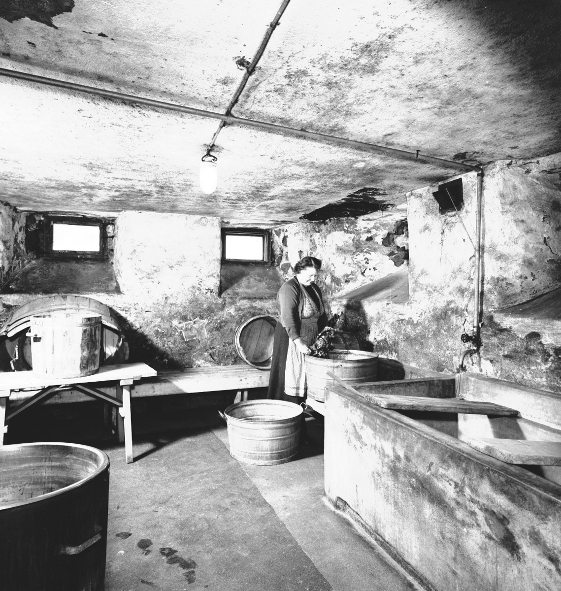 Tvättstuga. Den 21 januari 1957. Bilder för bok.