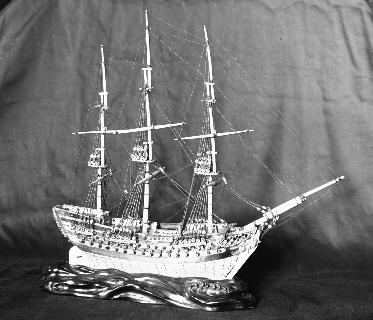 Från boken "Svenska Hem i ord och bilder" från 1944. Hemma hos direktör Engwall. Antikt skepp i elfenben