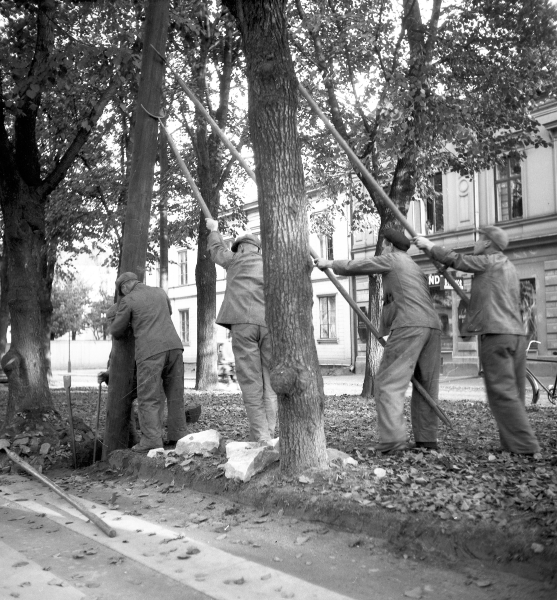 Resning av stolpar. Reportage för Gefle Dagblad. Den 1 oktober 1937