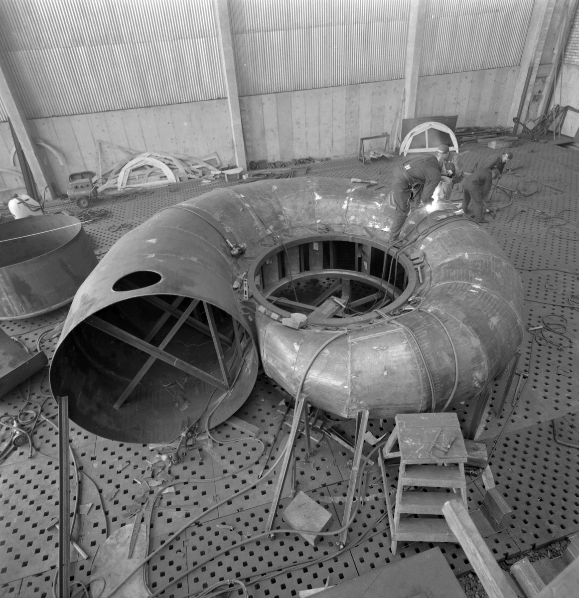 Den 15 juli 1960. Gävle Varv. Svetsning av vattenledning.
