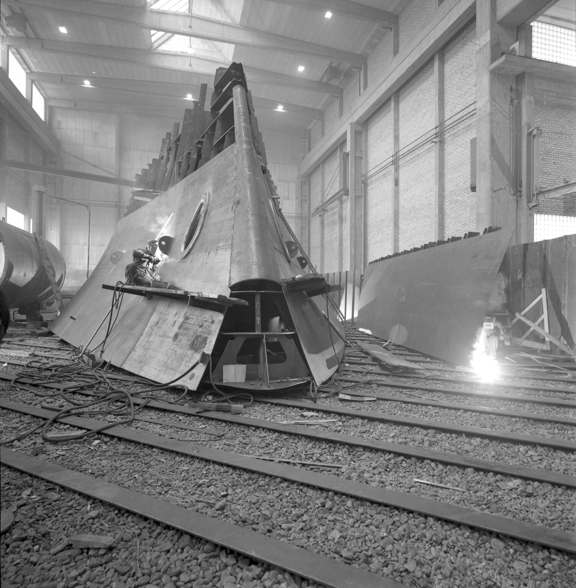 Den 19 april 1961. Gävle Varv. Skrov under byggnad.