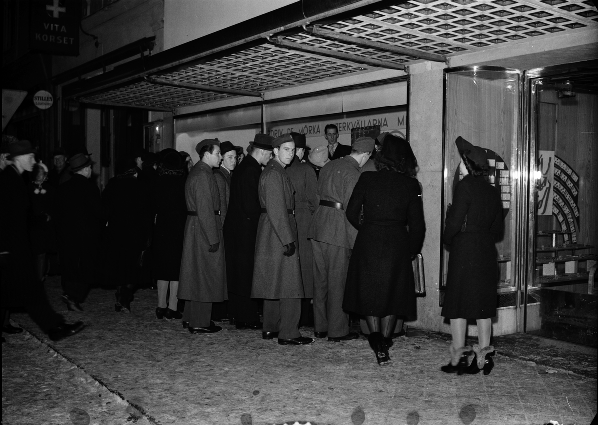 Demonstration utanför konsums fönster för " Lareo ". November 1941
