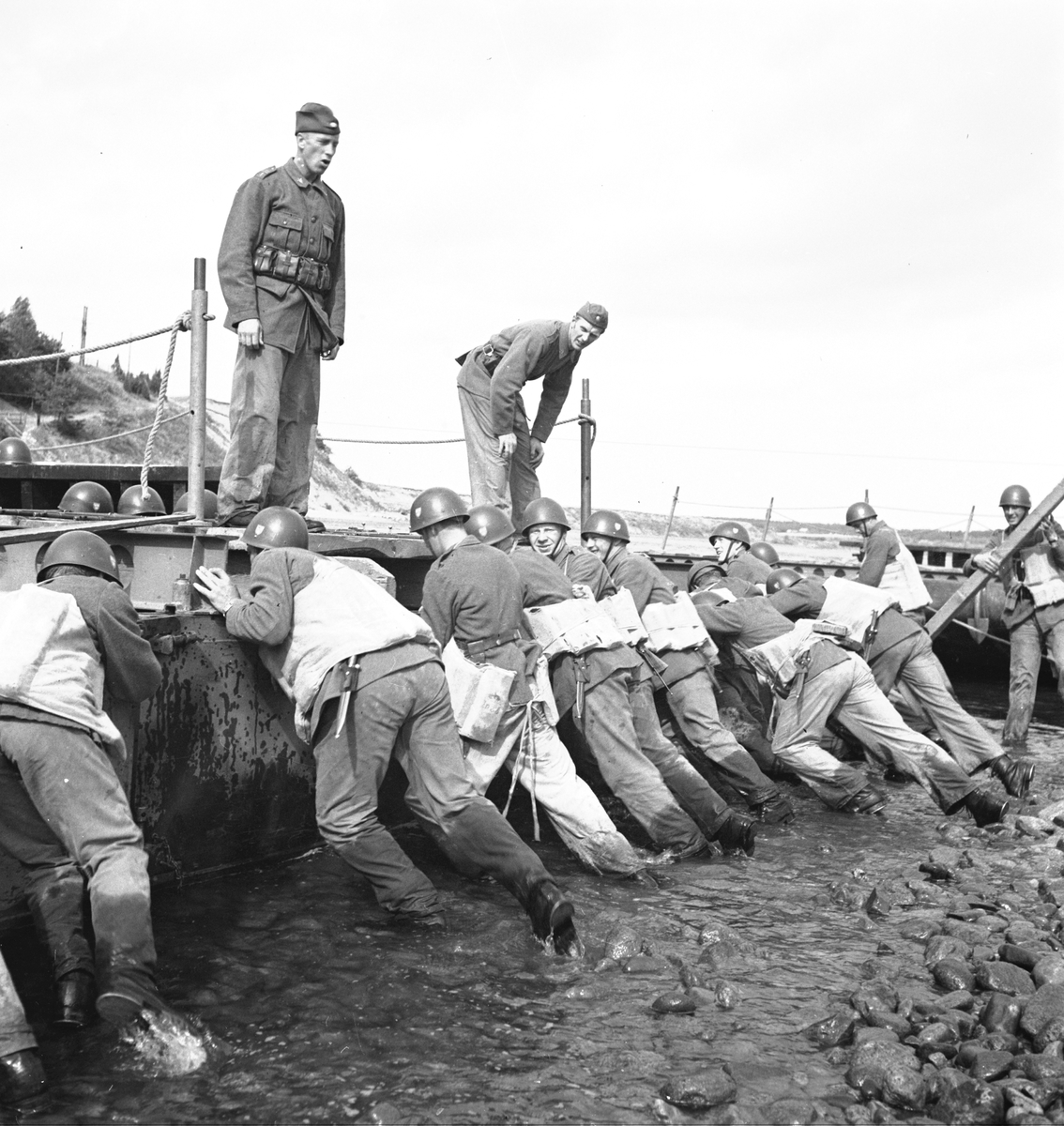 Titel: Krigsbrobygge vid Svea Ing:1 kåren. Älvkarleby. Augusti 1944