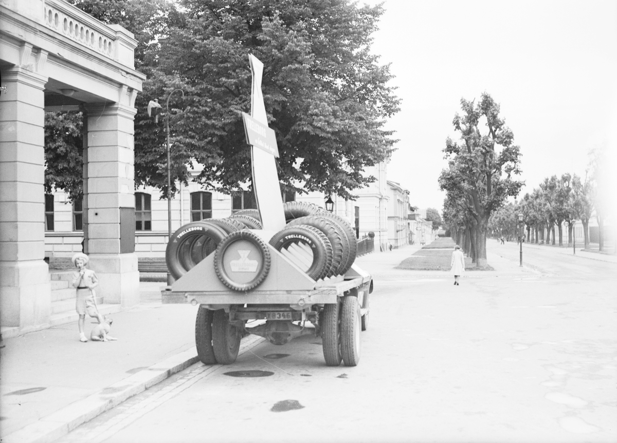 Trelleborgs Gummifabriks AB. "En fullblod bland ringare". Juli 1939. Gösta Anderssons Åkeri. Tel Gävle 1429