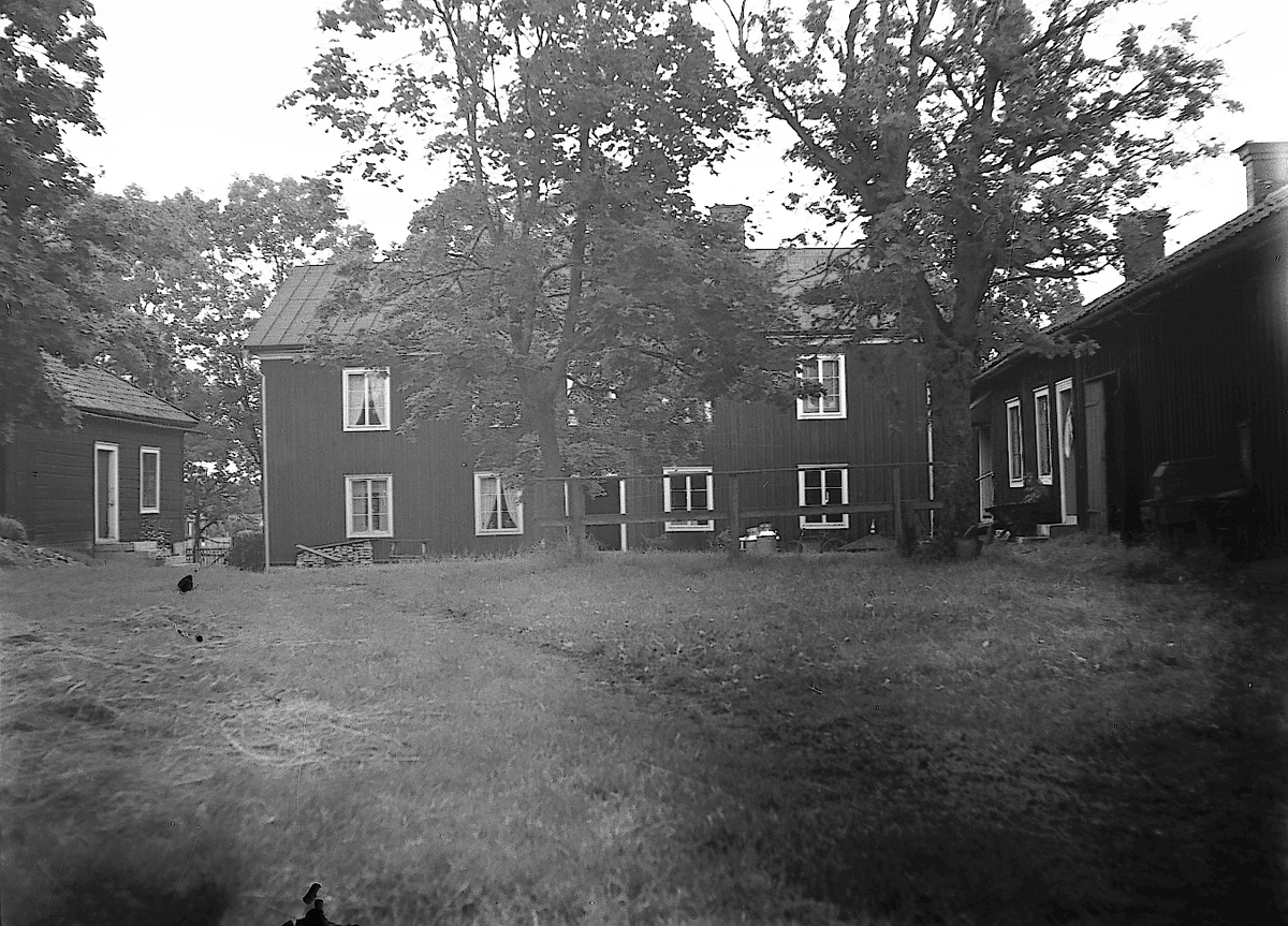 Bilden är tagen den 13 juli 1939 och föreställer gården Jon-Jons i Trödje. Den mycket stora mangårdsbyggnaden byggdes efter en förödande brand som drabbade flera gårdar i byn den 8 oktober 1854. När bilden togs ägdes gården av systrarna Stina och Karin Jonsson. Reportage för Norrlandsposten.