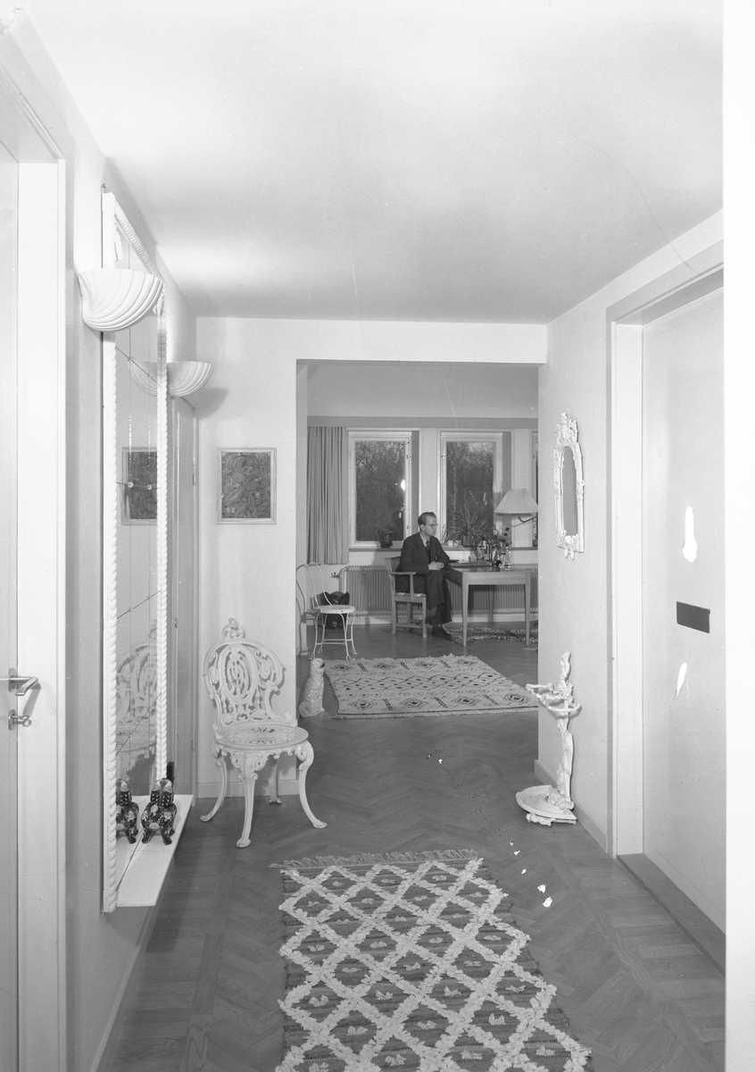 För boken "Svenska Hem i ord och bilder". Hos Direktörsassistenten vid Gefle Ångväveri Bengt Müller som ses vid bordet i bakgrunden