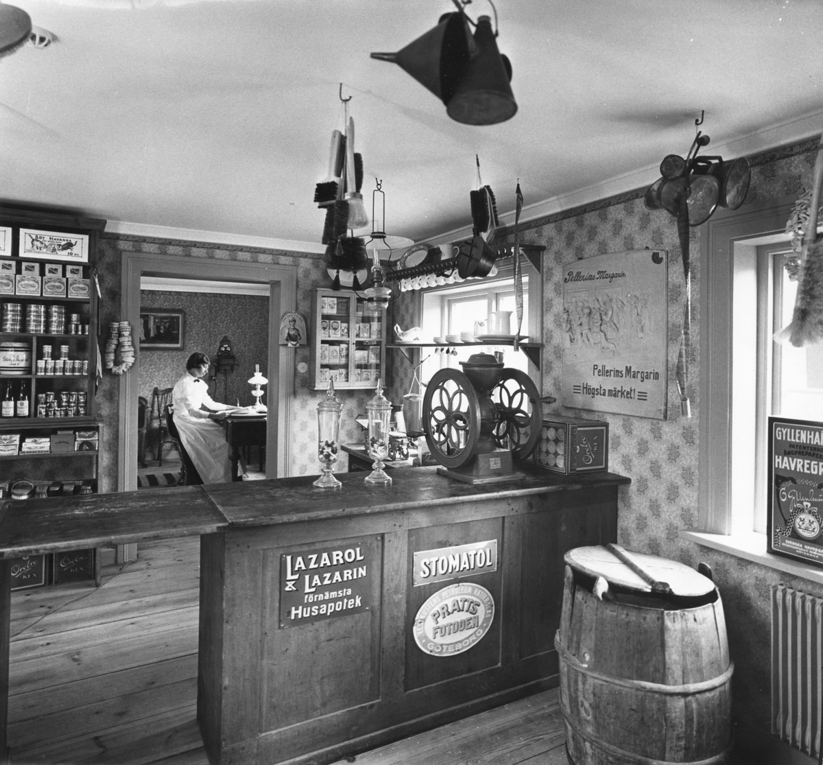 Interiör av Wadköpings diversehandel, Wadköpings handelsbod i Tenngjutaregården, kulturreservatet Wadköping.