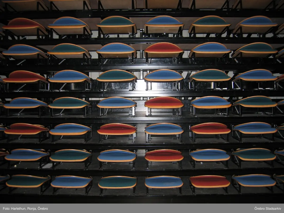Hopfällda stolar i aulan på Vivallaskolan, 2005