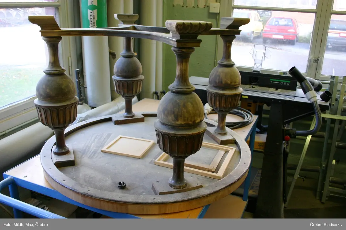 Uppochnervänt bord som ska renoveras på arbetsterapin, 2005