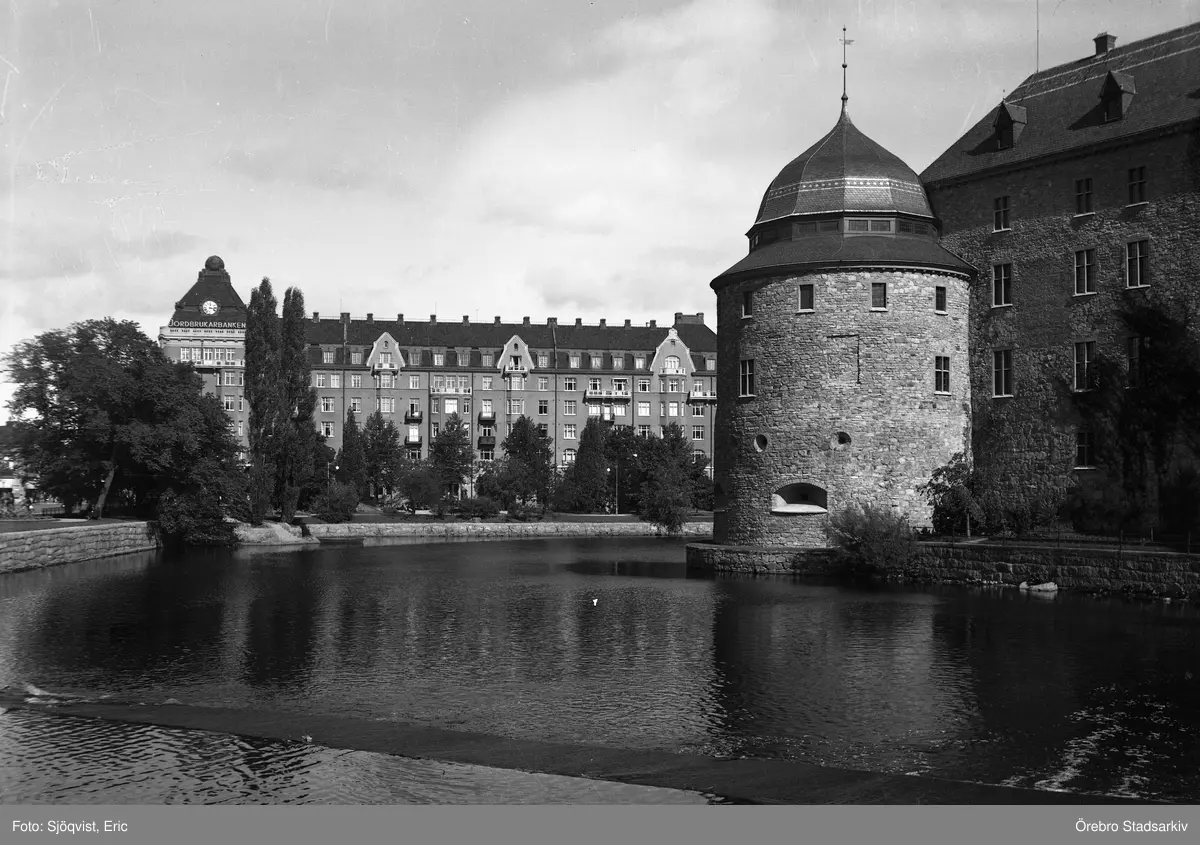 Centralpalatset och Örebro slott sett från Engelbrektsgatan, 1930-tal