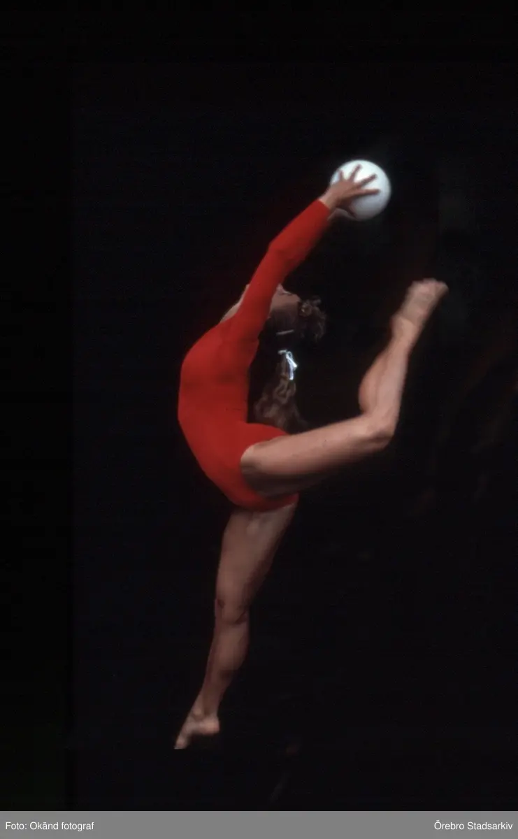 Gymnastik med boll på idrottshuset i Örebro, 1970-tal