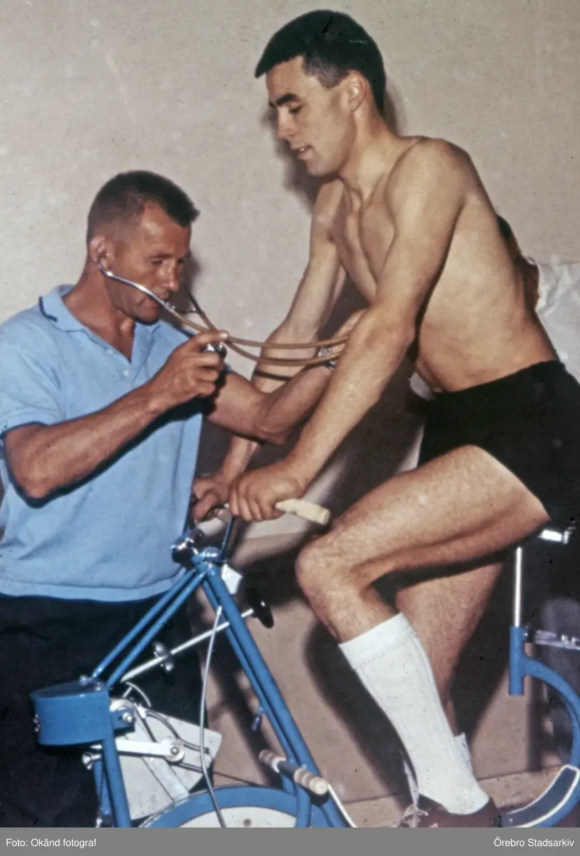 Bandyspelare tränar på testcykel, 1970-tal