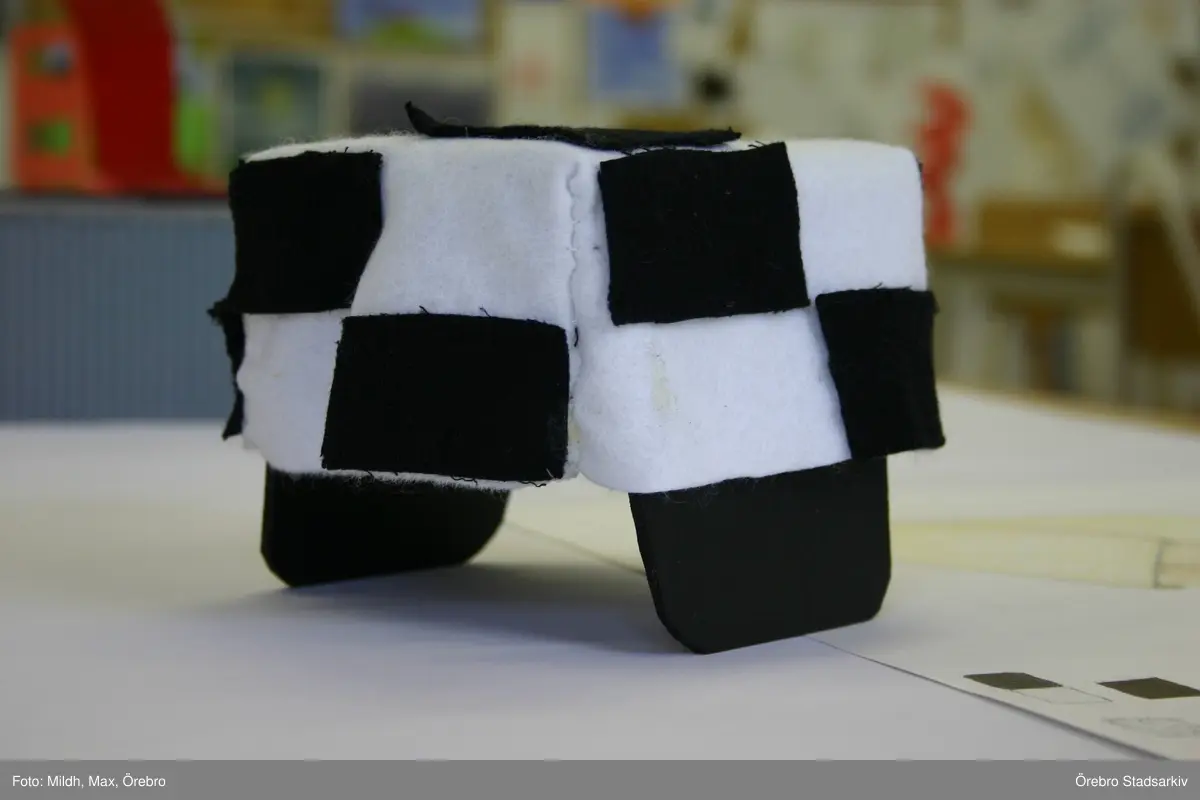 Elevarbete med pall i rutigt tyg i miniatyr, 2005