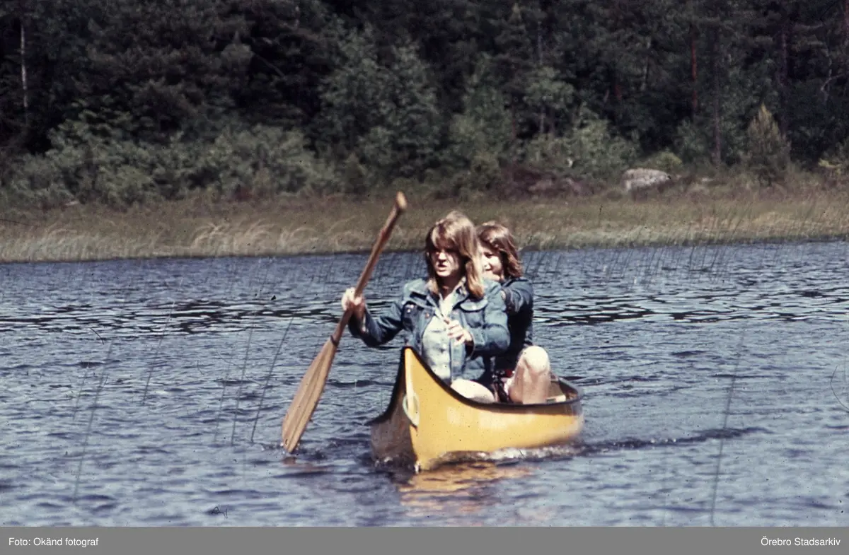 Paddling i Svartån vid Hästhagen, 1970-tal