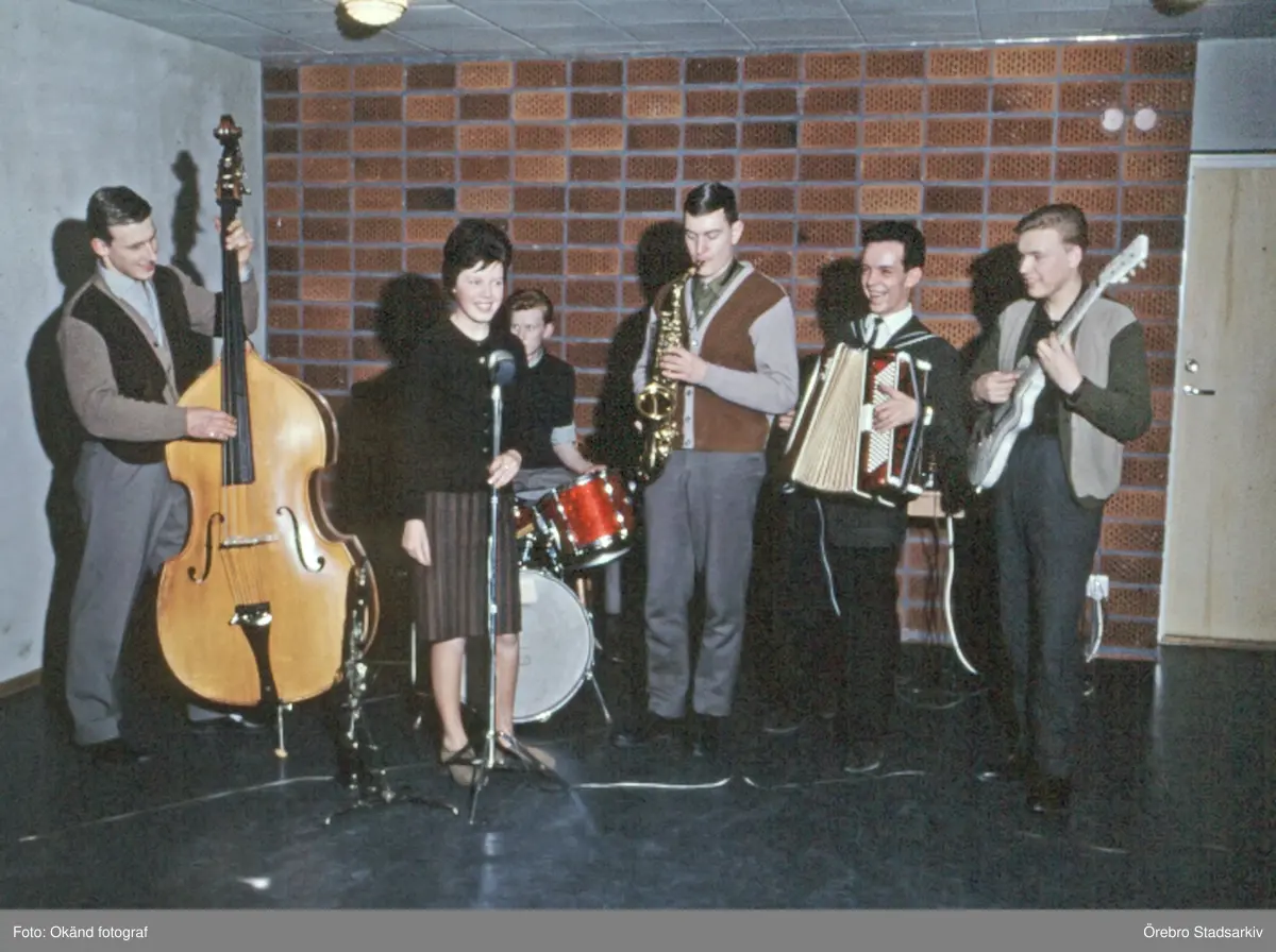 Gruppen Leffe Einars med Wivi Palmroth spelar på på ungdomsgård i Örebro, 1960-tal