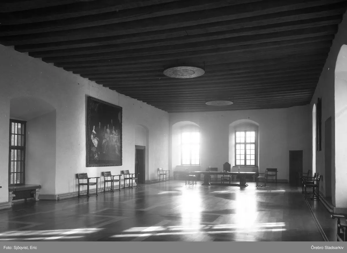 Solen speglar sig i Rikssalens golv på Örebro slott, 1930-tal