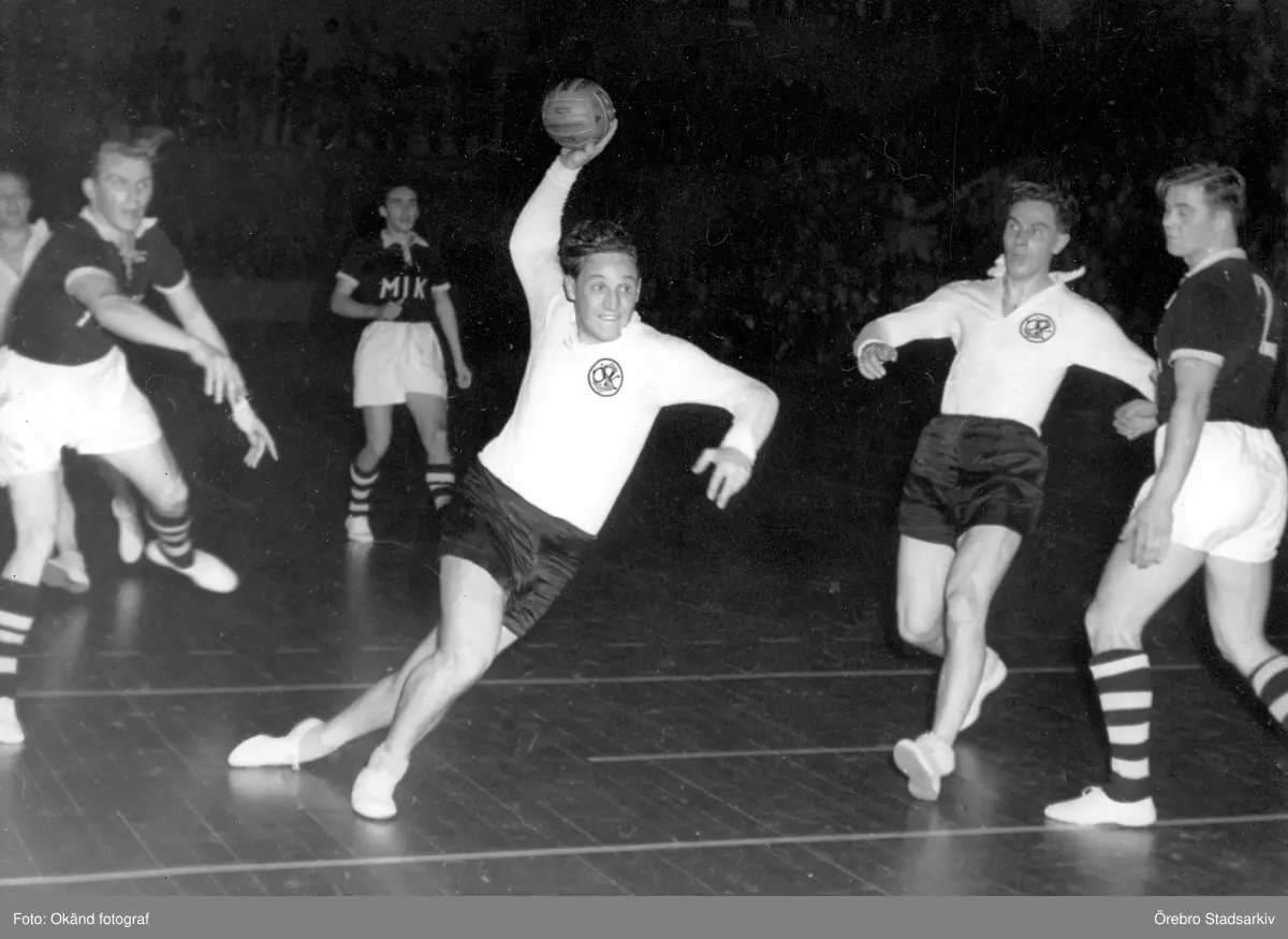 Handbollsmatch ÖSK- Majorna i idrottshuset i Örebro, 1950
