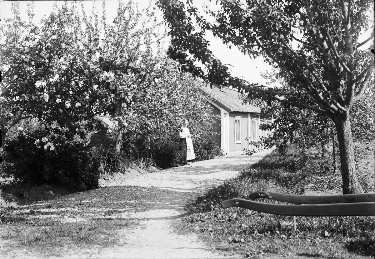 Kvinna står vid vägen, Östhammar, Uppland