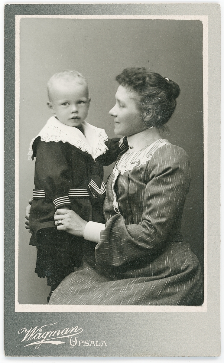 Kabinettsfotografi - kvinna med barn i sjömansdräkt, Uppsala