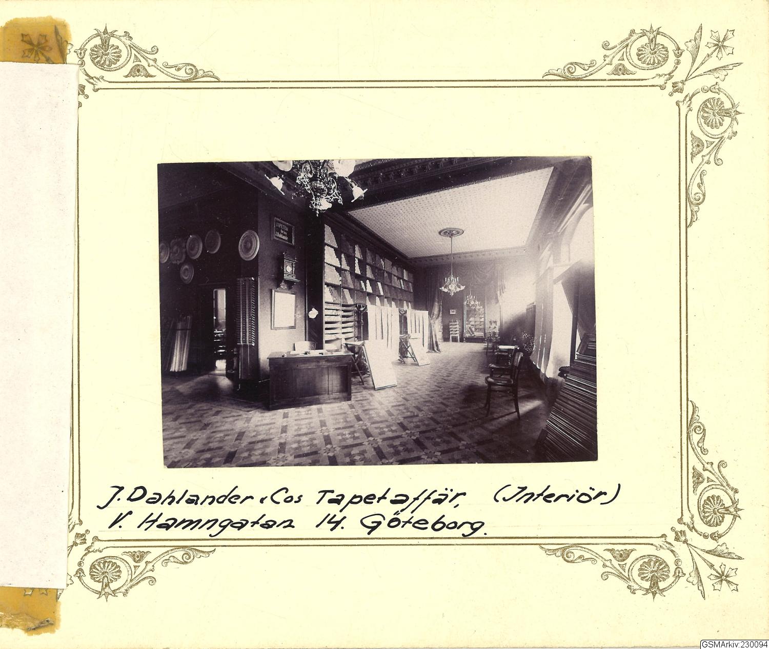 J. Dahlander & co tapetaffär (interiör) vid Södra Hamngatan 14, 1800-talet.