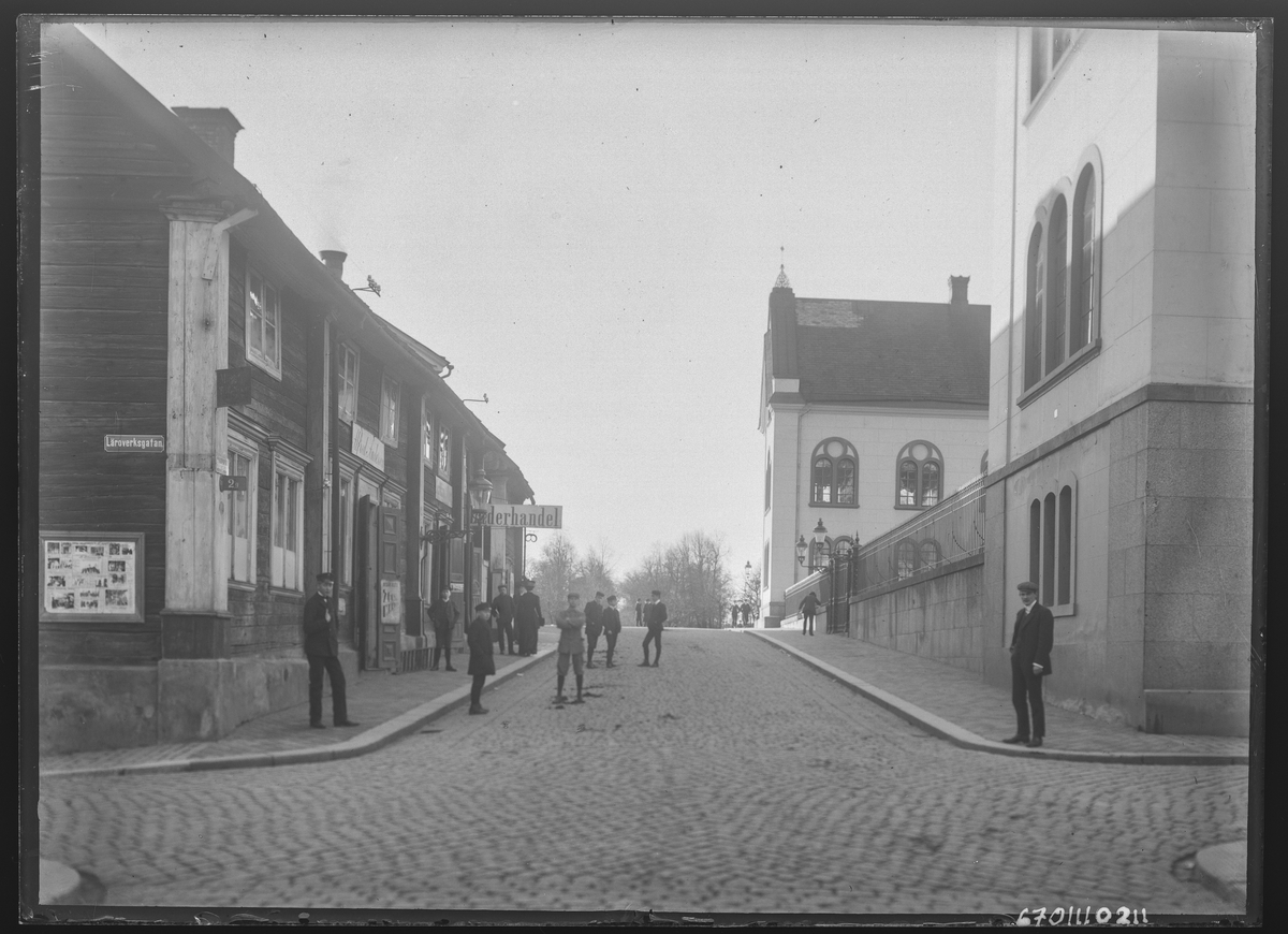 Storgatan i Linköping. Till höger ser man Stadshuset. År 1913 var byggnaden läroverk för pojkar