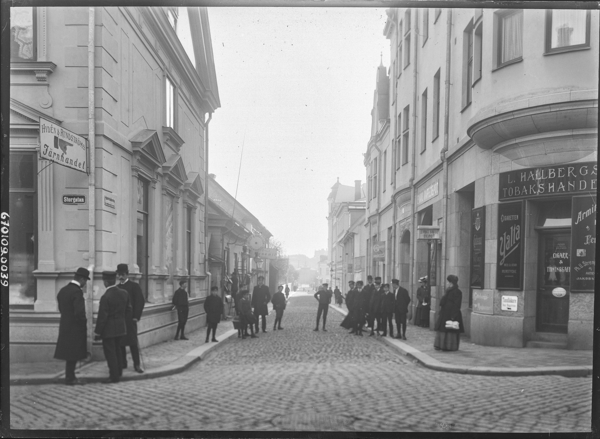 Apotekaregatan i Linköping. Hörnet mot Storgatan.