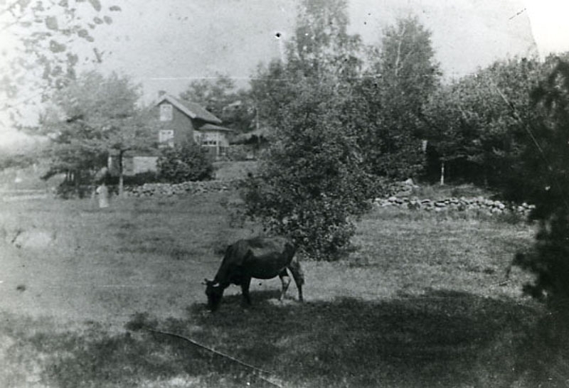 Ingår i dokumentationen från 1982 av Guntofta 1:4 Släp, tidigare Börje Månsgård. "Anders lycka" i Dalslyckan, Guntofta by. Kon Sofia betar utanför huset i hagen som är hägnad med en stengärdsgård.