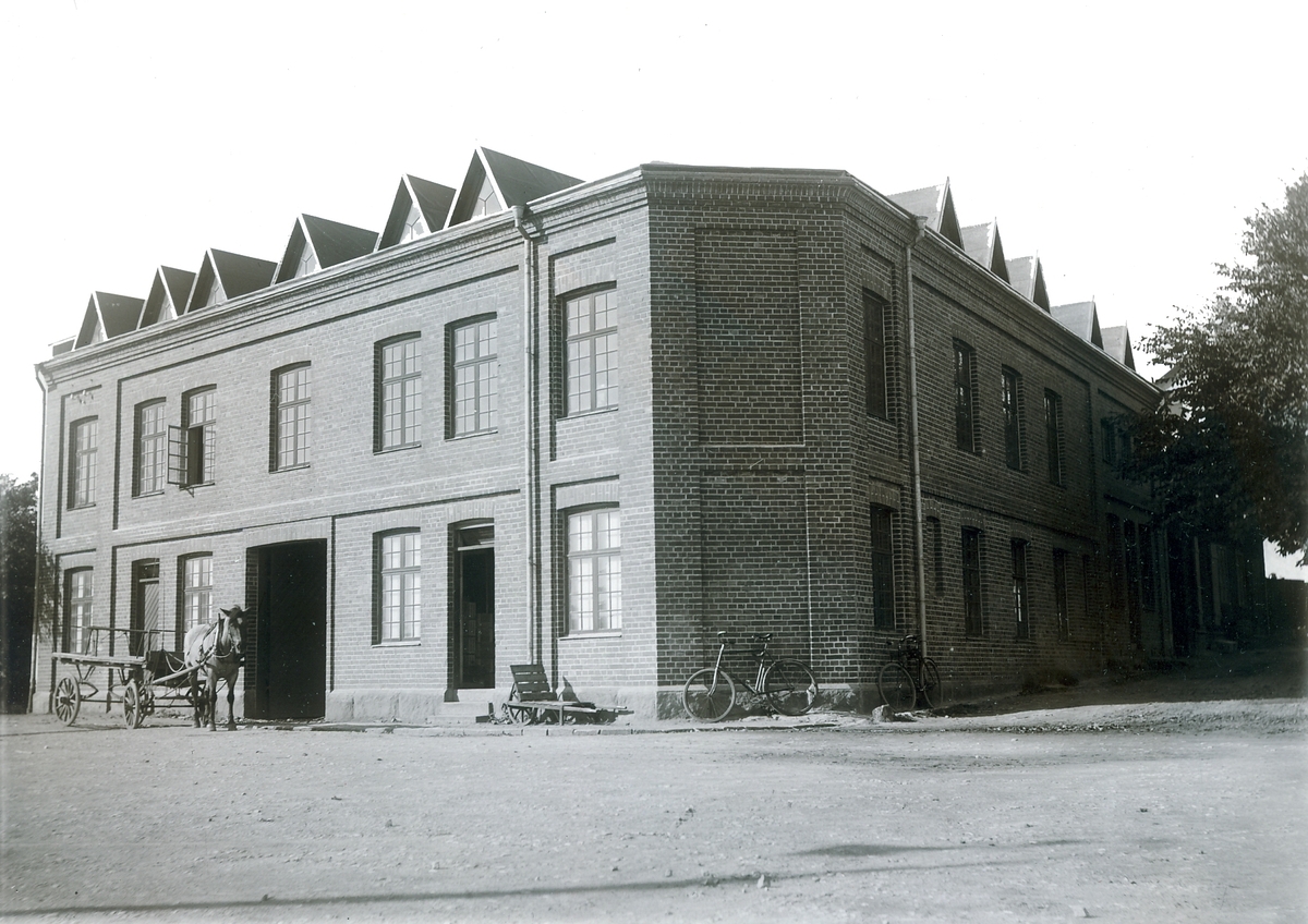 Ur byggmästare Johannes Nilssons fotoalbum från 1914. G O E Nordblom & Co:s magasinsbyggnad uppförd 1906 i korsningen Hamngatan 29-Krukmakaregatan 2 i Falkenberg. Företaget startades 1857 i Varberg av Gustav Otto Emanuel Nordblom men 1898 tog sonen Oscar Nordblom över. Firman importerade mängder av kolonialvaror. Efter sekelskiftet 1900 blev försäljningen av kaffe, petroleum och andra drivmedel såsom bensin, fotogen och oljor blev dess ekonomiska ryggrad.