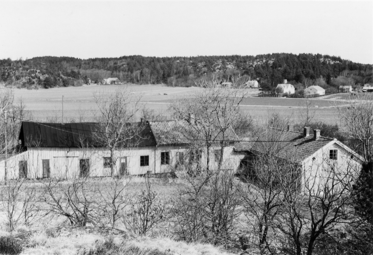 Gården på Guntofta1:4, Släp, tidigare Börje Månsgård, sedd från höjd i väster. Här bedrevs lanthandel och lantbruk 1850-1957 och därefter beboddes gården av syskonen Hansson fram till 1981.