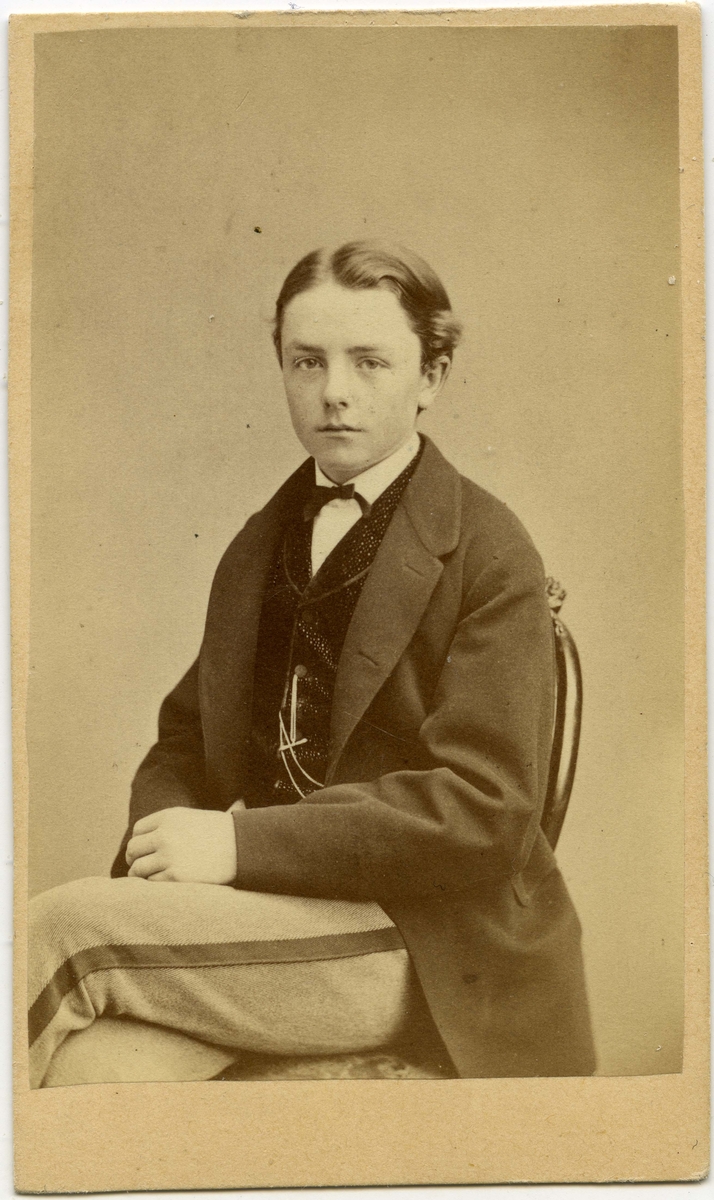 Porträtt på Alfred Lars Leonard von Heijne. Född 14 juni år 1853 på Bjälkesta. Kadett vid krigsskolan på Karlberg 19 januari år 1872. Död där 9 maj år 1874.