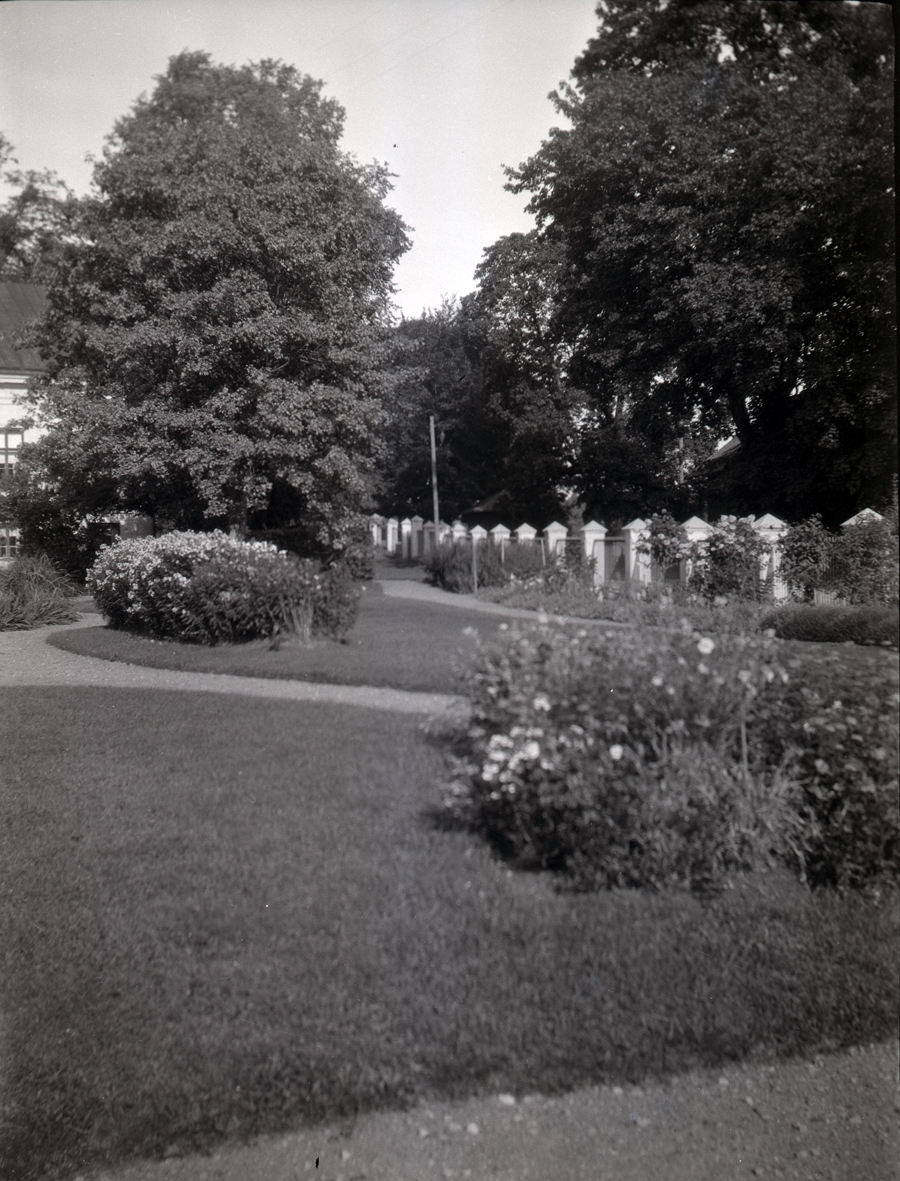 Staket och blommor på Tuna gård.