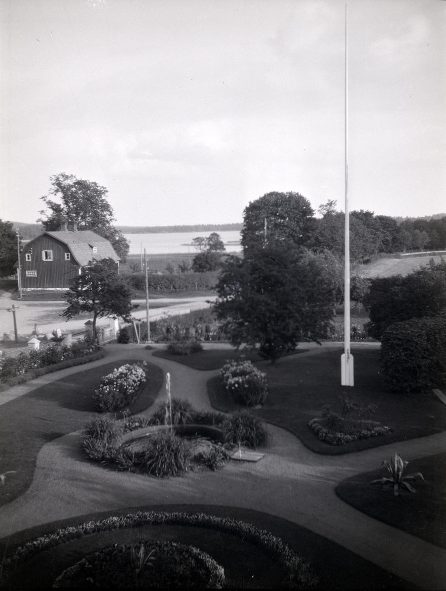 Trädgården på Tuna gård och inspektorsbostaden samt Tunasjön.