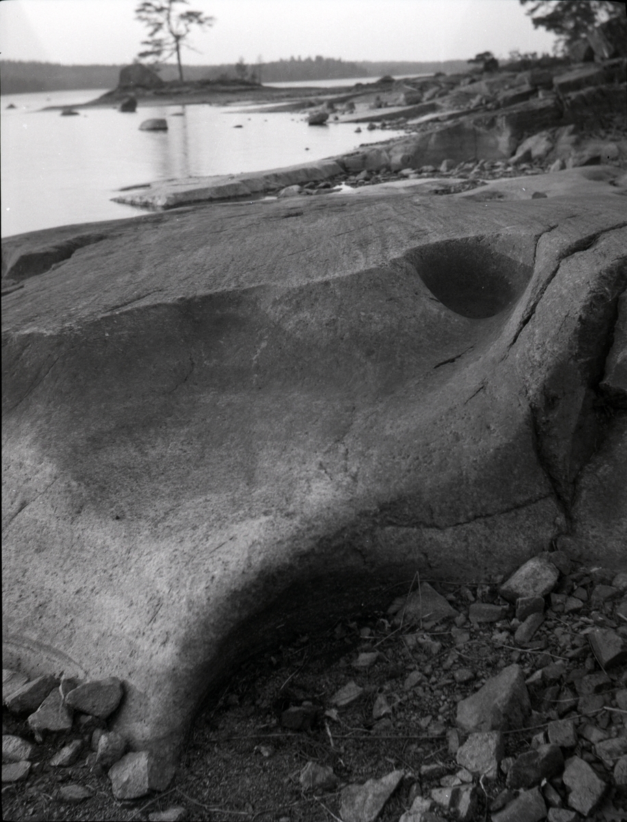 En jättegryta vid en sjö i närheten av Tuna gård.