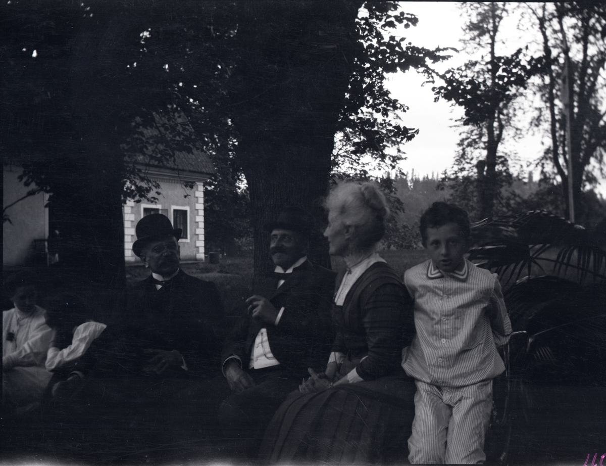 I mitten Carl Henrik Tiselius och Augusta Stålberg som troligtvis är Karins föräldrar. Pojken är troligen Carl Henrik. På Tuna gård.