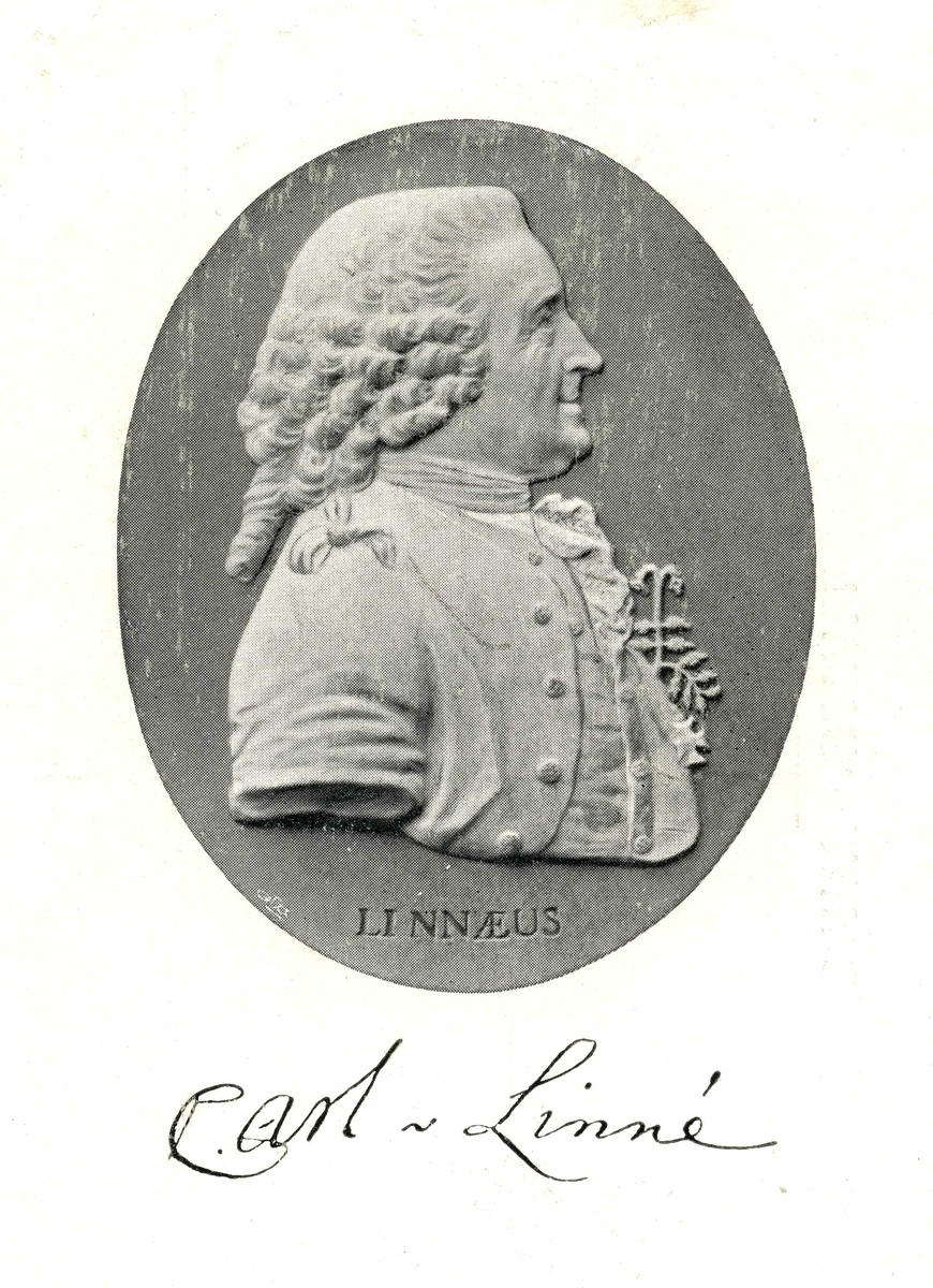 Vykort med relief föreställande Carl von Linné.