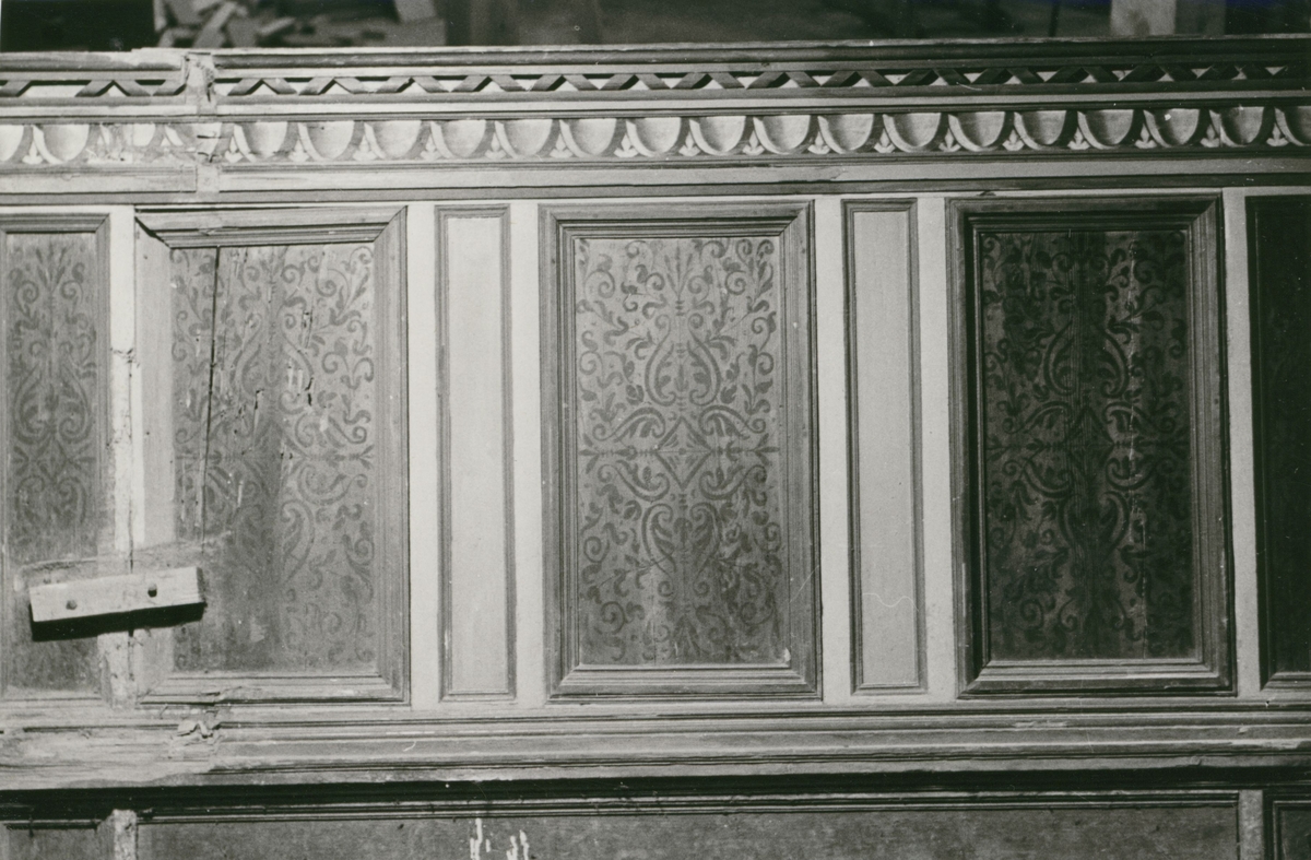 Målade kyrkbänkar i Slottskyrkan.
