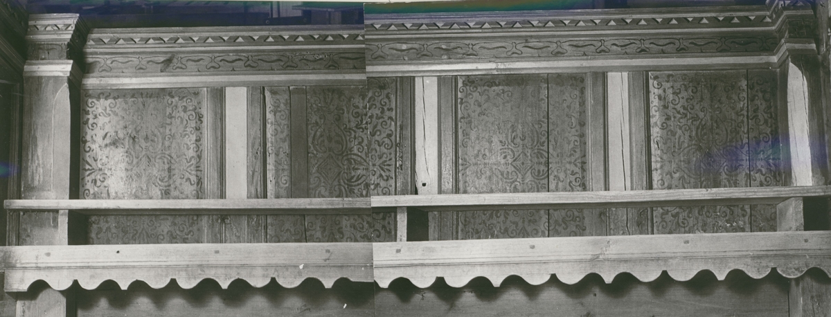 Målade kyrkbänkar i Slottskyrkan.