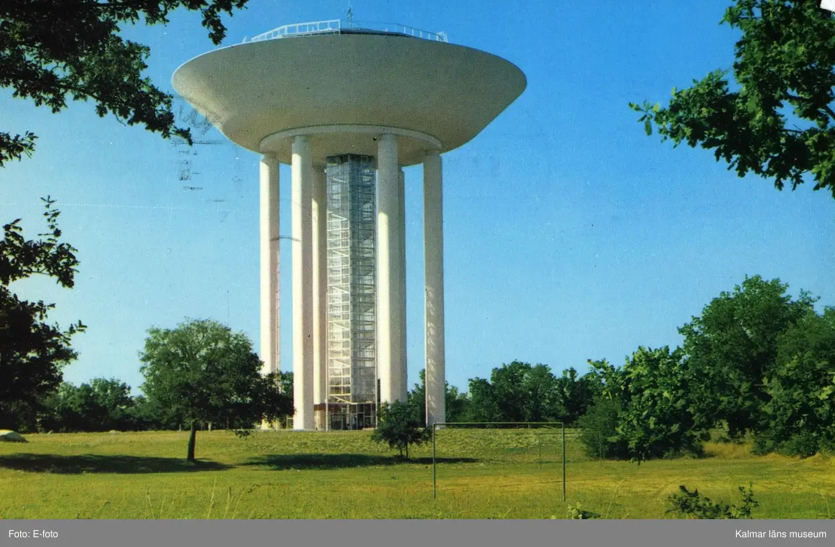 Kalmar nya vattentorn, färdigt 1972. Ovanpå skålen fanns ursprungligen en restaurang som senare stängdes av utrymningsskäl.