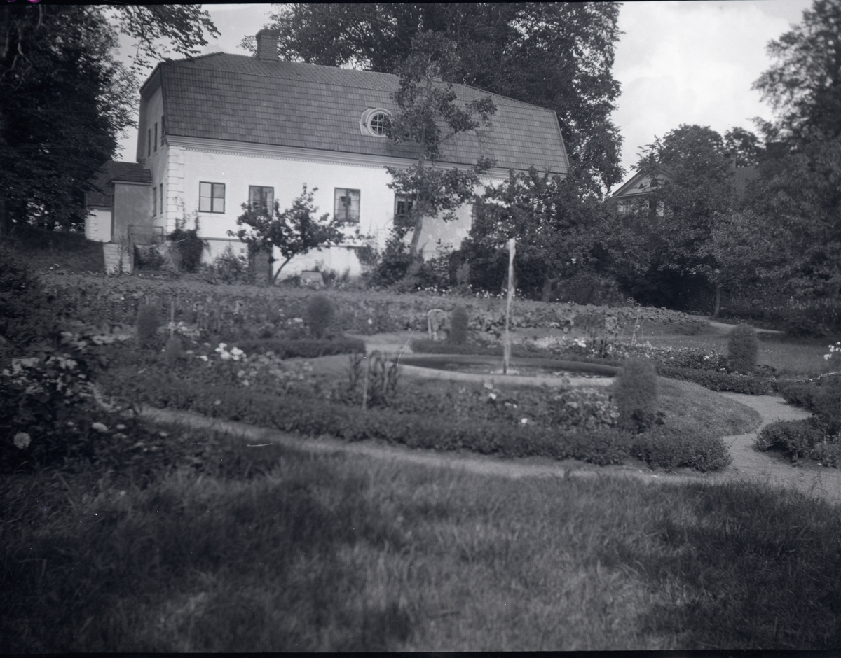 Fontänen och trädgårdsflygeln på Tuna gård.