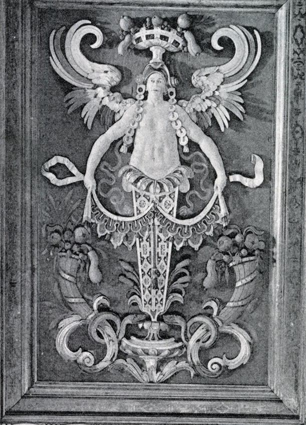 Ett av fälten i Förgyllda salens tak. Bilden är tagen ur Martin Olssons verk "Kalmar slotts och stads historia".