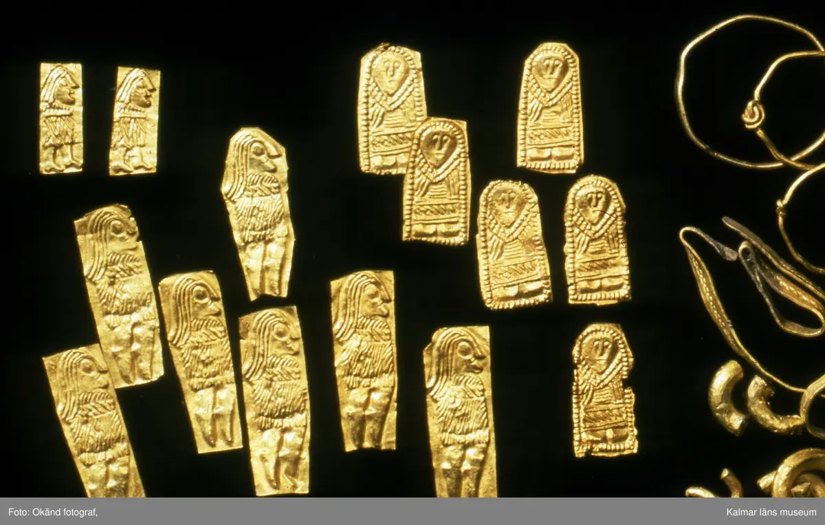 Figurbleck av guld, daterade till 400-700 efter Kristus, påträffade i Eketorp II.