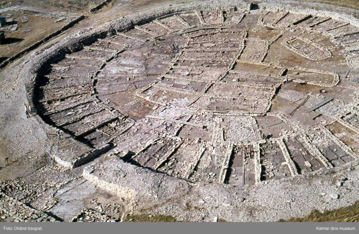Från utgrävningarna av Eketorps borg. Flygbild av Eketorp II.