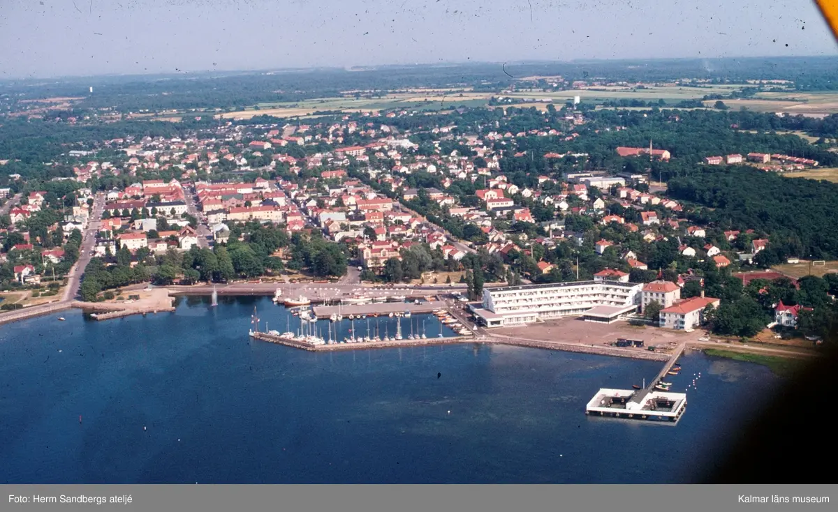 Borgholm med hamnen i förgrunden, Strand hotell till höger i bild.