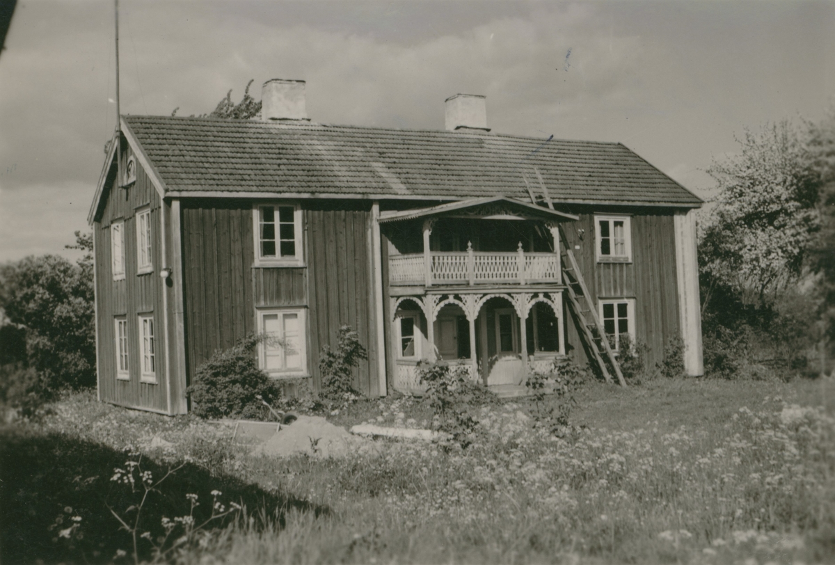 Huvudbyggnaden på Axebo gård, försedd med snickrad veranda.