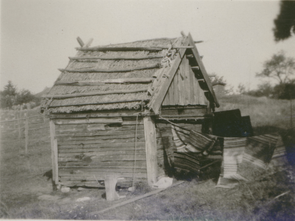 Ekonomibyggnad med stråtak och knutlådor i Drag.