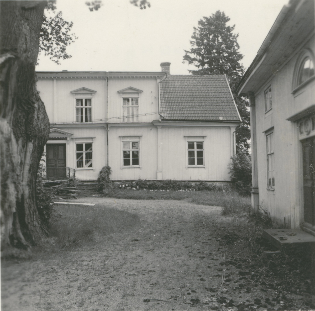 Titel: Knapegården, där tidningen Barometerns grundare Jon Engström bodde. Huvudbyggnaden med norra flygelbyggnaden.