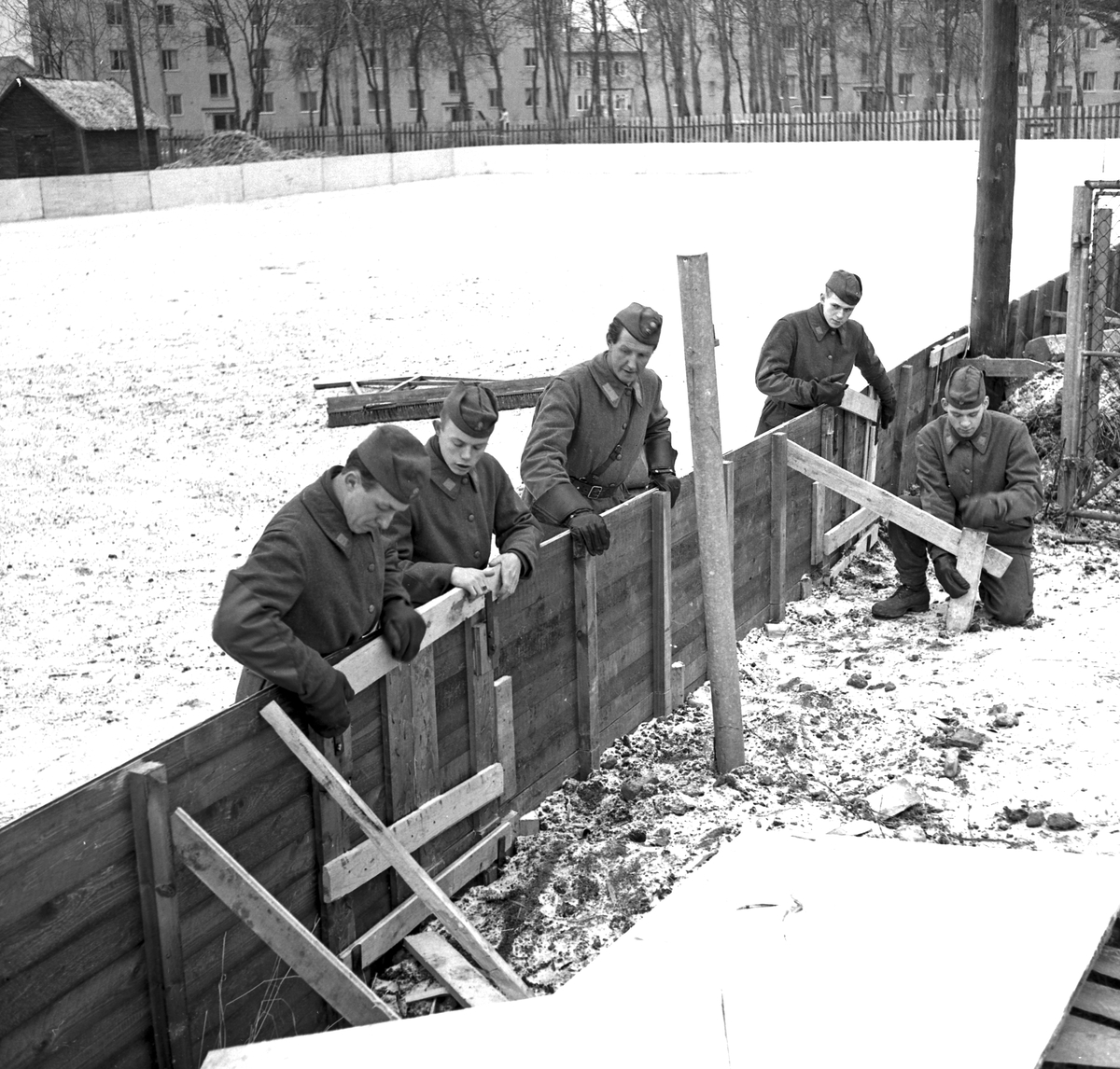 Fem soldater från Hälsinge regemente (I14) fixar staket