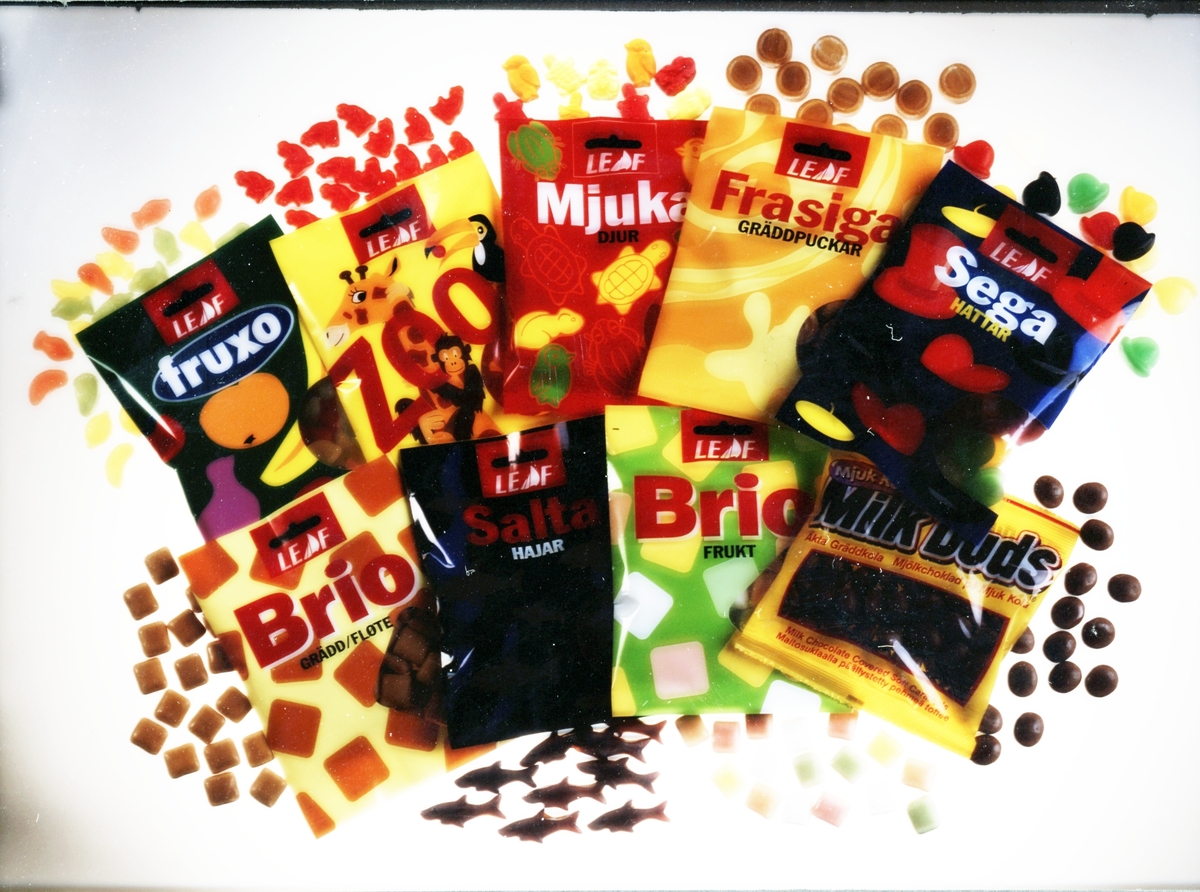 Godisåsar, bland annat ZOO, Fruxo och Salta hajar.