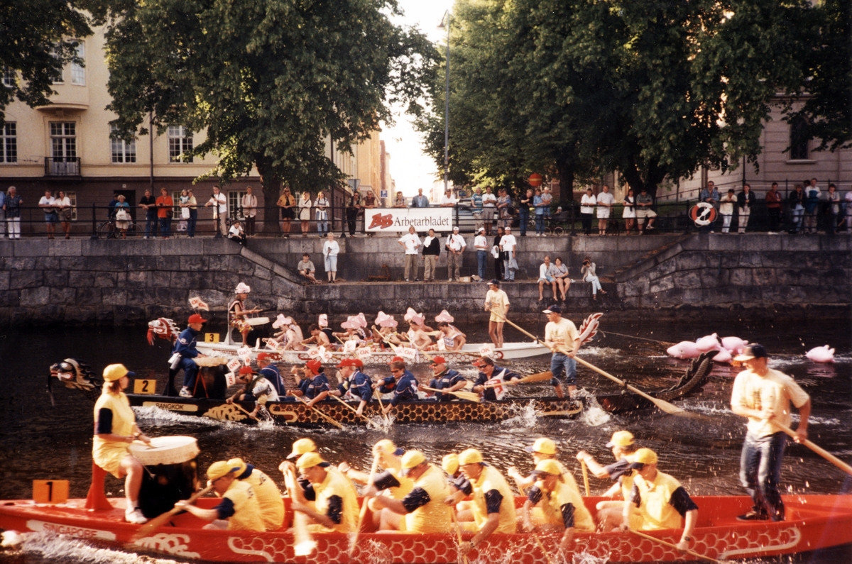 Drakbåtstävlingen 9/6 1998. Gick av stapeln i Gavleån.